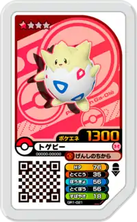 Togepi (Japanese: トゲピー Togepy) is a Grade 1 Pokémon Ga-Olé disk. It is part of the first Grand Rush set.