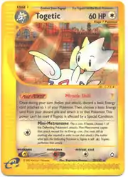 Togetic (Japanese: トゲチック Togechick) is a Colorless-type Stage 1 Pokémon card. It is part of the Aquapolis expansion.