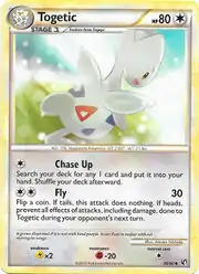 Chase Up is an attack originally seen on Majestic Dawn Manaphy. Fly is a move in the Pokémon games that Togetic can learn via HM02. This card's Pokédex entry comes from Pokémon SoulSilver.