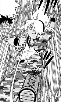 While at a train museum, Kururu once again served as a mode of flight transportation for Katsuya in order to glide him to the area where the train tracks bridge broke. Kururu's only known move is Close Combat. | ||