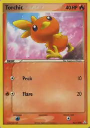 Torchic (Japanese: アチャモ Achamo) is a Fire-type Basic Pokémon card. It is part of the EX Holon Phantoms expansion.