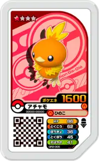 Torchic (Japanese: アチャモ Achamo) is a Grade 1 Pokémon Ga-Olé disk. It is part of the second Grand Rush set.