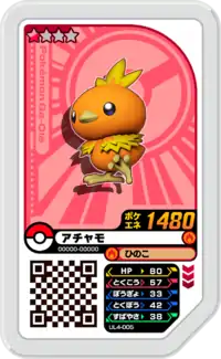 Torchic (Japanese: アチャモ Achamo) is a Grade 1 Pokémon Ga-Olé disk. It is part of the fourth Ultra Legend set.