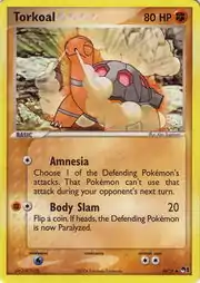 Amnesia and Body Slam are both moves in the Pokémon games that Torkoal can learn.