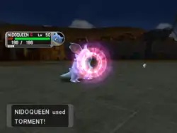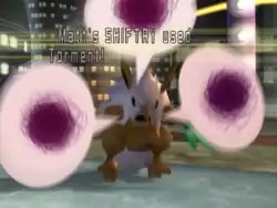 Torment (Japanese: いちゃもん Falsely Accuse) is a non-damaging Dark-type move introduced in Generation III. It was TM41 from Generation III to Pokémon Ultra Sun and Ultra Moon.