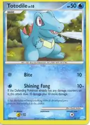Totodile (Japanese: ワニノコ Waninoko) is a Water-type Basic Pokémon card. It was first released as part of the Mysterious Treasures expansion.