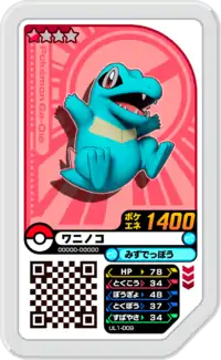 Totodile (Japanese: ワニノコ Waninoko) is a Grade 1 Pokémon Ga-Olé disk. It is part of the first Ultra Legend set.