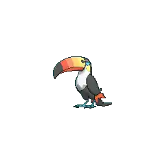 There are gases inside its beak, which can ignite and launch seeds with enough force to shatter boulders. Additionally, its temperature can exceed 212° Fahrenheit (100° Celsius) and cause severe burns on contact. It can use this beak to warm up eggs, as shown in the anime. This ability also allows it to use its signature move Beak Blast. In order to communicate, Toucannon strike each other with their beaks. The number and strength of the hits reflect how it is feeling. Toucannon is well known for forming loving couples. This makes it a common good luck charm at weddings.