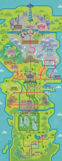 Some locations have a guide (Japanese: ガイド guide) that details information on important places. This feature was expanded for every location on the Town Map starting in Pokémon Diamond and Pearl.