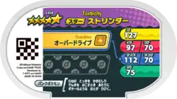 Toxtricity (Japanese: ストリンダー Strinder) is a Grade 5 Pokémon Mezastar tag. It is part of the third set.