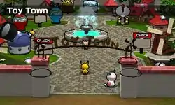 Toy Town (Japanese: トイタウン Toy Town) is the first accessible town in Pokémon Rumble Blast, located within Trailhead Field. It holds a move vendor for Giga Impact and a Move-a-majig, as well as the normal town facilities.