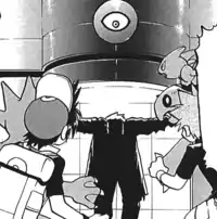 After Giovanni succeeded in trapping Mewtwo with the M2 Bind restraint armor, R came back online to explain its use and prevent Porygon2 from moving with a virtual lock. As it gloated, Giovanni noted that it was created by Carr, which explains its rude, crass, and arrogant personality. He then left the building to rendezvous with the Team Rocket airship, leaving the Pokédex holders to battle Organism No. 2's duplicates.
