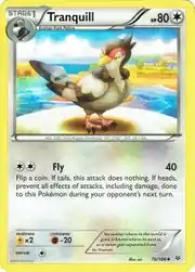 Tranquill (Japanese: ハトーボー Hatoboh) is a Colorless-type Stage 1 Pokémon card. It is part of the Roaring Skies expansion.