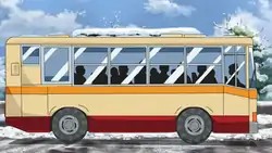 In A Snow Day for Searching!, Goh and later Ash used a bus to travel from Vermilion City to visit Goh's family. In Under Color of Darkness!, Ash and Goh rode a bus to look for a white flower for Goh's Flabébé.