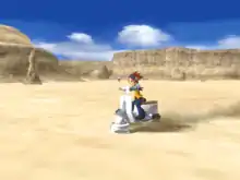 Michael is using a scooter to travel around Orre. Later on, it is converted into a hoverscooter to reach S.S. Libra.