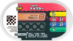 Trapinch (Japanese: ナックラー Nuckrar) is a Grade 2 Pokémon Mezastar tag. It is part of the fourth set.