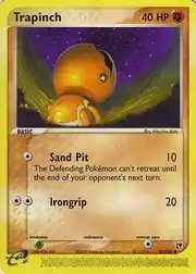 Trapinch (Japanese: ナックラー Nuckrar) is a Fighting-type Basic Pokémon card. It is part of the EX Sandstorm expansion.