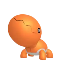 Trapinch is an orange, insectoid Pokémon. It has a round body with a white underside and four stumpy legs. It also has a proportionally large head, small black eyes with twinkle-shaped pupils, and a zigzagging mouth.