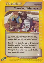 Traveling Salesman (Japanese: 行商人 Peddler ) is a Supporter card. It is part of the Aquapolis expansion.