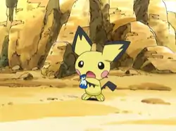 A Treasure Bag belonging to Pikachu appeared in Pokémon Mystery Dungeon: Team Go-Getters Out of the Gate!. It was found by Team Go-Getters and Pichu upon exiting the Sinister Cave. Later, while Team Go-Getters was battling Skarmory who was holding Pikachu and Pichu as prisoners, Pikachu had Pichu drop out a Quick Seed from the Treasure Bag, which Pikachu kicked into Squirtle's mouth. Using the speed boost from the Quick Seed, Squirtle was able to confuse Skarmory, leading to its eventual defeat.