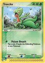Treecko (Japanese: キモリ Kimori) is a Grass-type Basic Pokémon card. It is part of the EX Ruby & Sapphire expansion.