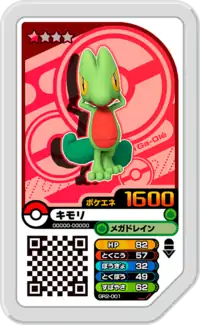 Treecko (Japanese: キモリ Kimori) is a Grade 1 Pokémon Ga-Olé disk. It is part of the second Grand Rush set.