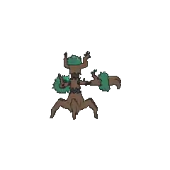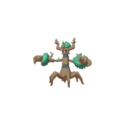 Trevenant can control other trees by using its roots as a nervous system. It uses this ability to trap people who harm its forest and will curse people who cut down trees. However, it is very kind to forest-dwelling creatures and Pokémon that reside in its body. Trevenant hates Fire-type Pokémon, so lumberjacks usually bring them to repel it. Along with its pre-evolved form Phantump, Trevenant is the only known Pokémon capable of learning Forest's Curse.