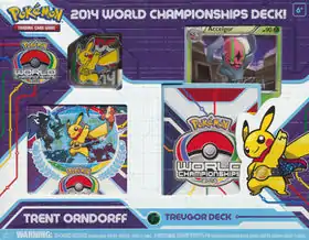 Trevgor is the name of the deck used by Trent Orndorff, who was the champion in the Senior Division in the 2014 World Championships. It is one of the four 2014 World Championships Decks, released in November 2014, and is based on the Mew/Accelgor archetype. Each Deck comes with a Worlds 2014 themed Deckbox, a booklet about the championships, a non-tournament-legal print of the sixty card deck, and the 2014 World Championships Pin. The cards included in the deck aren't the prints actually used in the decks, but are the most recent printing of the lowest rarity of the cards.