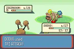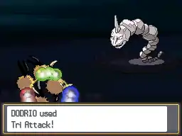 Doduo opens both of its beaks and releases multiple pyramid-shaped energy from them at the opponent. When the energy makes contact, it explodes in a large burst of energy. | ||