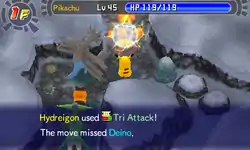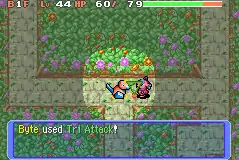 In Red Rescue Team, Blue Rescue Team, Explorers of Time, Explorers of Darkness and Explorers of Sky, Tri Attack is a move with base power of 6, 7 PP and 100% accuracy.