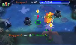 Porygon-Z's body glows and it fires three beams in the form of fire, electricity, and ice at the opponent. | ||