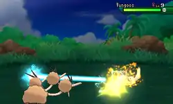 Dugtrio fires three beams and multiple triangular shapes from its body at the opponent. | ||