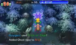 Trick-or-Treat (Japanese: ハロウィン Halloween) is a non-damaging Ghost-type move introduced in Generation VI. It is the signature move of Pumpkaboo and Gourgeist.