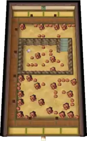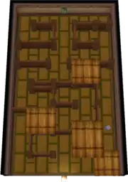 In Ruby, Sapphire, and Emerald, the eighth puzzle is a room is divided into two areas, an upper and lower area. Both are made up primarily of polished floors lined with pots. Similar to ice tiles, stepping on the polished floor will send the player sliding across it until they hit an obstacle. The player must navigate their way across both floors to advance. This is the final puzzle.