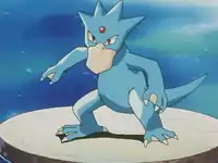 | Trinity's Golduck was the Pokémon Trinity used in her battle against a Pokémon Trainer and his Feraligatr in the finals of the Whirl Cup. But before the battle could begin, Team Rocket appeared and nabbed the Sea Spirit. Pikachu was able to break the line, allowing Golduck, along with Ash's Totodile, Misty's Poliwhirl, and the Trainer's Feraligatr, to use Water Gun to send Team Rocket blasting off. Golduck was later shown to have lost the battle.
