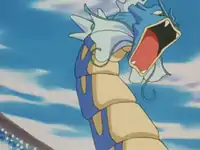 | Trinity's Gyarados was the first Pokémon Trinity used in her battle against Misty and her Poliwhirl in the Whirl Cup. Misty ordered Poliwhirl to use Bubble but Gyarados charged up a Hyper Beam, stopping the Bubble barrage and knocking Poliwhirl out. Misty then decided to send out Corsola next. Trinity commanded Gyarados to use Hydro Pump and it fired a powerful stream of water, but Misty told Corsola to counter it with Mirror Coat. The Hydro Pump was sent back, but Gyarados fired its Hyper Beam, blowing the water away and still going straight for Corsola. Corsola dove down and the beam blew up behind her. Waiting a while, Misty finished Gyarados off with Spike Cannon, which amazingly knocked it out.