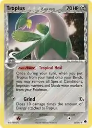 Tropius δ (Japanese: トロピウス δ Tropius δ) is a Metal-type Basic Pokémon card. It is part of the EX Dragon Frontiers expansion.