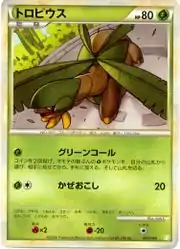 Gust is a move in the Pokémon games that Tropius can learn. This card's Pokédex entry comes from Pokémon HeartGold and SoulSilver.