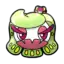 On top of Tsareena's head is a light green calyx. The shortest leaf of the calyx extends slightly forward and then curves to the right, similar to side-swept bangs. The other three leaves resemble long hair and extend nearly to the ground. The three long leaves each have three yellow spots near the top and three near the bottom; the markings are present on both the under and upper sides of the leaves. On top of the calyx is a growth resembling a small, purple crown with four thin yellow stripes.