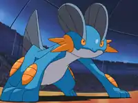 It also appeared in flashbacks in Channeling the Battle Zone! and A Pyramiding Rage!. Swampert's known moves are Protect, Mud Shot, Dynamic Punch, Water Gun, and Water Pulse. | ||