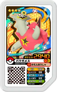 Turtonator (Japanese: バクガメス Bakugames) is a Grade 3 Pokémon Ga-Olé disk. It is part of the second Grand Rush set.