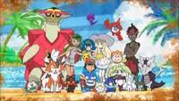 The subsequent scene is of Jigglypuff singing, which is followed by a picture of the Ultra Guardians. Then, the camera shows Lillie, Mallow with Steenee, and Lana with Popplio. The following scene depicts Ash and Pikachu meeting all four guardian deities. The final shot is of Ash and his Pokémon posing with his friends and their Pokémon.