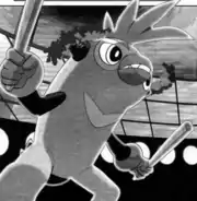 Twiggy (Japanese: スティックン Sutikkun) is a Thwackey that Henry Sword owns in Pokémon Adventures and his second Pokémon overall.