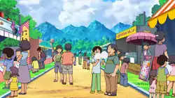 The festival had many different food stalls and contest booths that were supervised by Sayer. One of the booths was given to Brock and another to the Team Rocket trio. In Historical Mystery Tour!, a rivalry between Team Rocket's Goldeen Scoop Game and Brock's booth occurred due to Team Rocket's being much more successful.