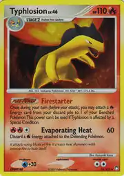 Typhlosion (Japanese: バクフーン Bakphoon) is a Fire-type Stage 2 Pokémon card. It is part of the Mysterious Treasures expansion.