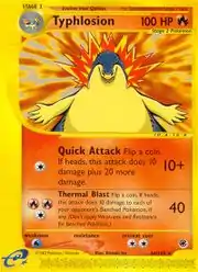 Typhlosion (Japanese: バクフーン Bakphoon) is a Fire-type Stage 2 Pokémon card. It was first released as part of the Expedition Base Set.
