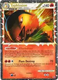 Typhlosion (Japanese: バクフーン Bakphoon) is a Fire-type Stage 2 Pokémon Prime card. It was first released as part of the HeartGold & SoulSilver expansion.