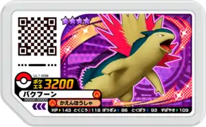 Typhlosion (Japanese: バクフーン Bakphoon) is a Grade 4 Pokémon Ga-Olé disk. It is part of the first Ultra Legend set.