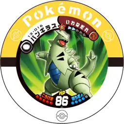 Tyranitar (Japanese: バンギラス Bangiras) is a Pokémon Battrio puck. It is part of the Challenging the Myths expansion.