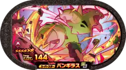 Tyranitar (Japanese: バンギラス Bangiras) is a Grade 6 Pokémon Mezastar tag. It is part of the third set.